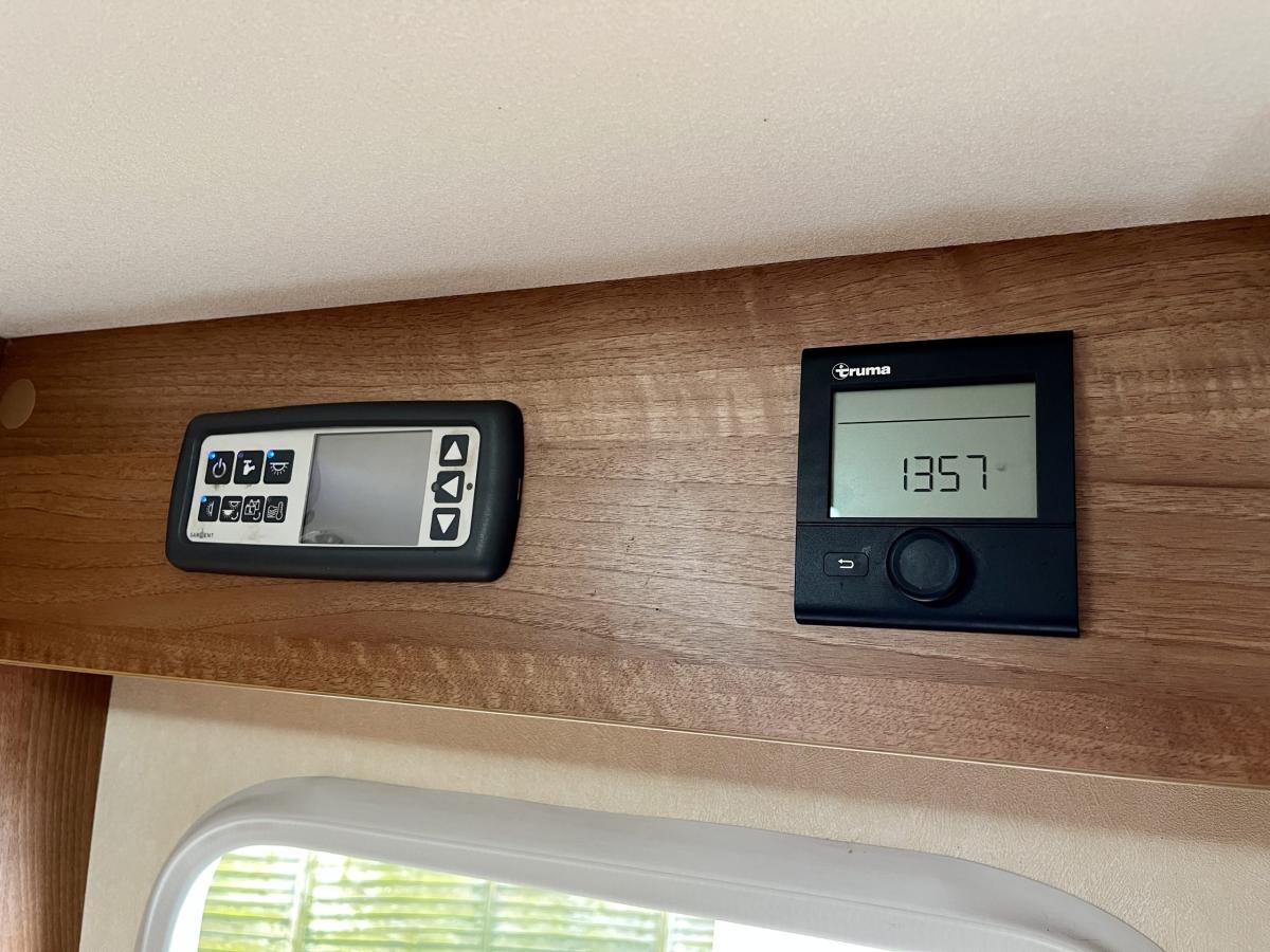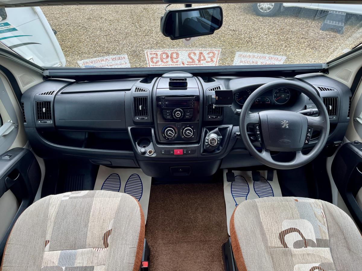 Front cab with two designated travelling seats, electric windows and mirrors, CD/Radio, cab air conditioning, large front skylight, reversing camera monitor and front window blind.