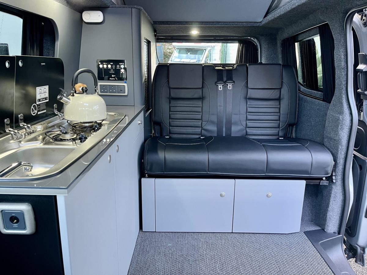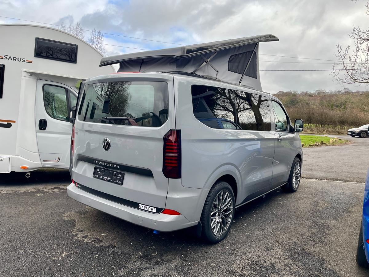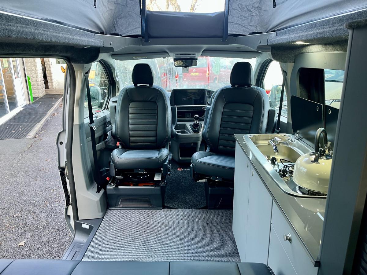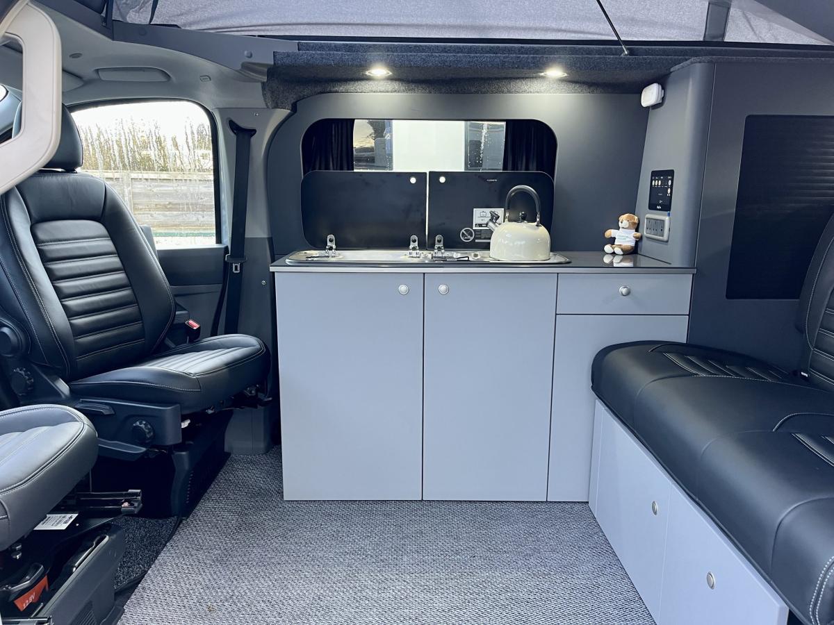 Brand new into the business we have another Bespoke Explore Pop Top Campervan based on the latest generation Transporter. Based on a SWB T28 Commerce Plus and finished in the beautiful 'Stone Grey'. With upgraded leather upholstery finished in a beautiful black leather with Grey stitching, this will certainly turn heads for all of the right reasons.