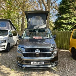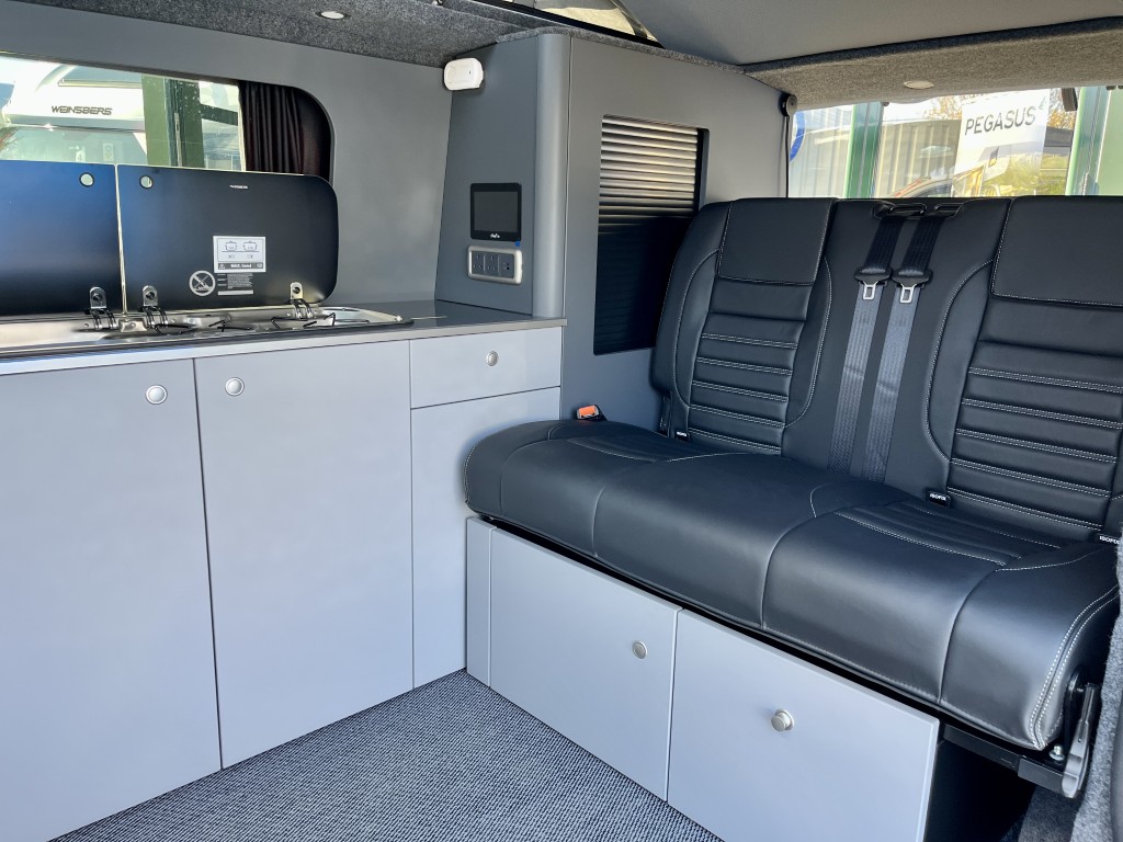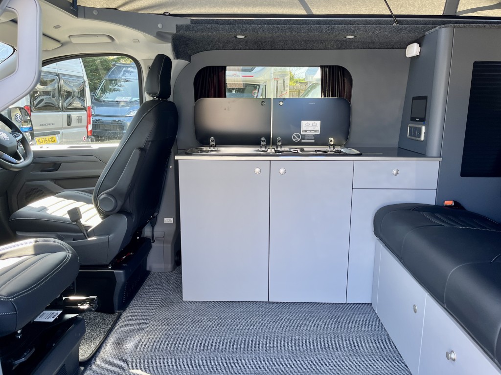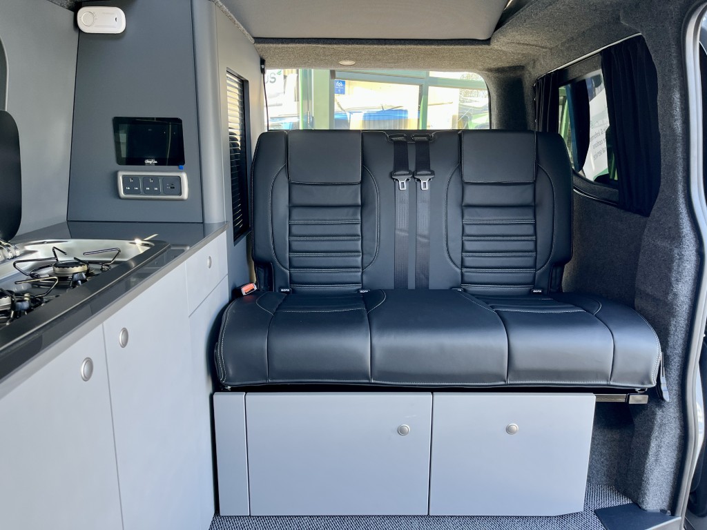 The latest Bespoke Explore to arrive with us here at Birkbrow Leisure. This pop top campervan is based on the latest generation Transporter. Based on a SWB T28 Commerce Plus and finished in the beautiful 'Stone Grey'. With upgraded leather upholstery finished in a beautiful black leather with Grey stitching, 150PS automatic this will certainly turn heads for all of the right reasons.