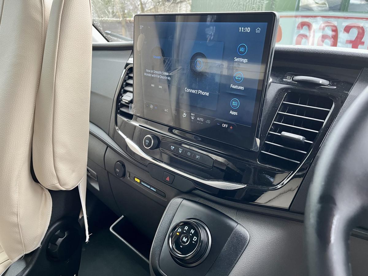 Front cab with two designated travelling seats that will both swivel in a captain style, electric windows and mirrors, electric handbrake, automtatic headlights, digital cockpit, multi-functional steering wheel, gear paddels, cruise control, large touch screen media unit, air conditioning, Bluetooth Phone Connectivity, Apple Car Play/Andriod and the new generation automatic gearbox.