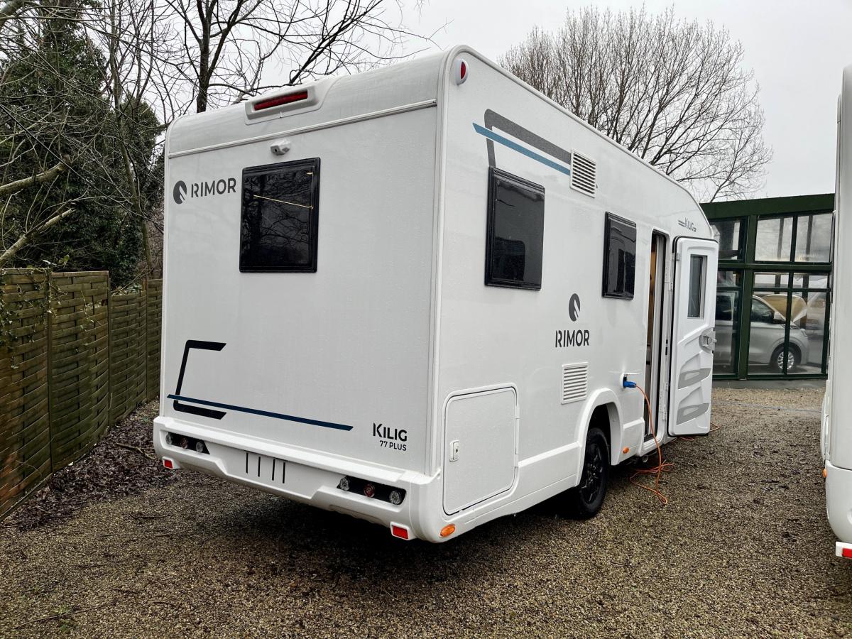 A highlight sought after rear lounge layount and what a motorhome to have it on. This brand new and unregistered 2025MY Rimor Kilig 77 Plus is a fabulous modern open plan layout perfect for two or upto five. With five deignated travelling seats and two electric drop down double beds this really is exceptional. With the optional upgrades of the brand new automatic gearbox, digital cockpit and larger touch screen media system allong with the alloy wheel option finsihed in Black this vehicle is stunning.